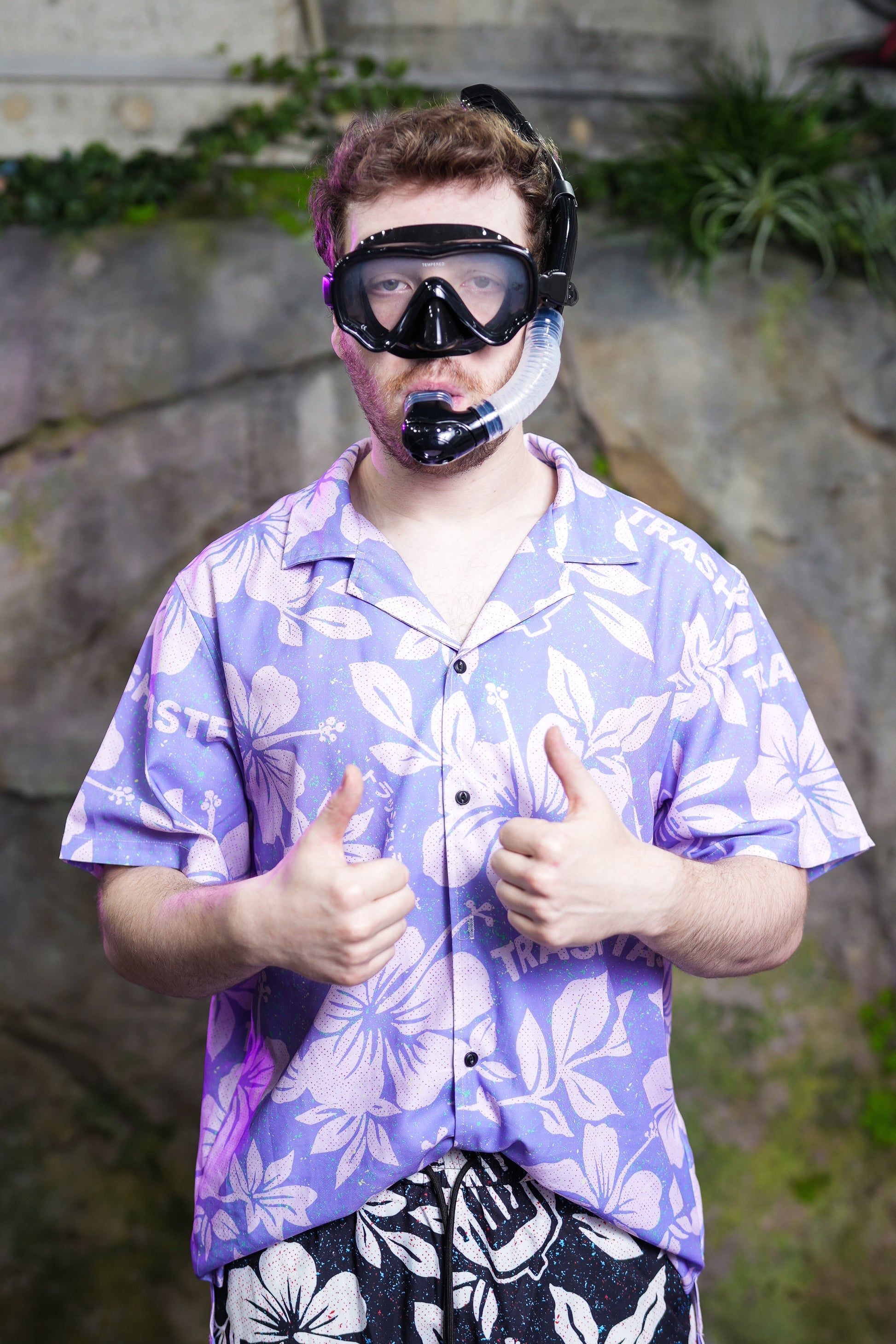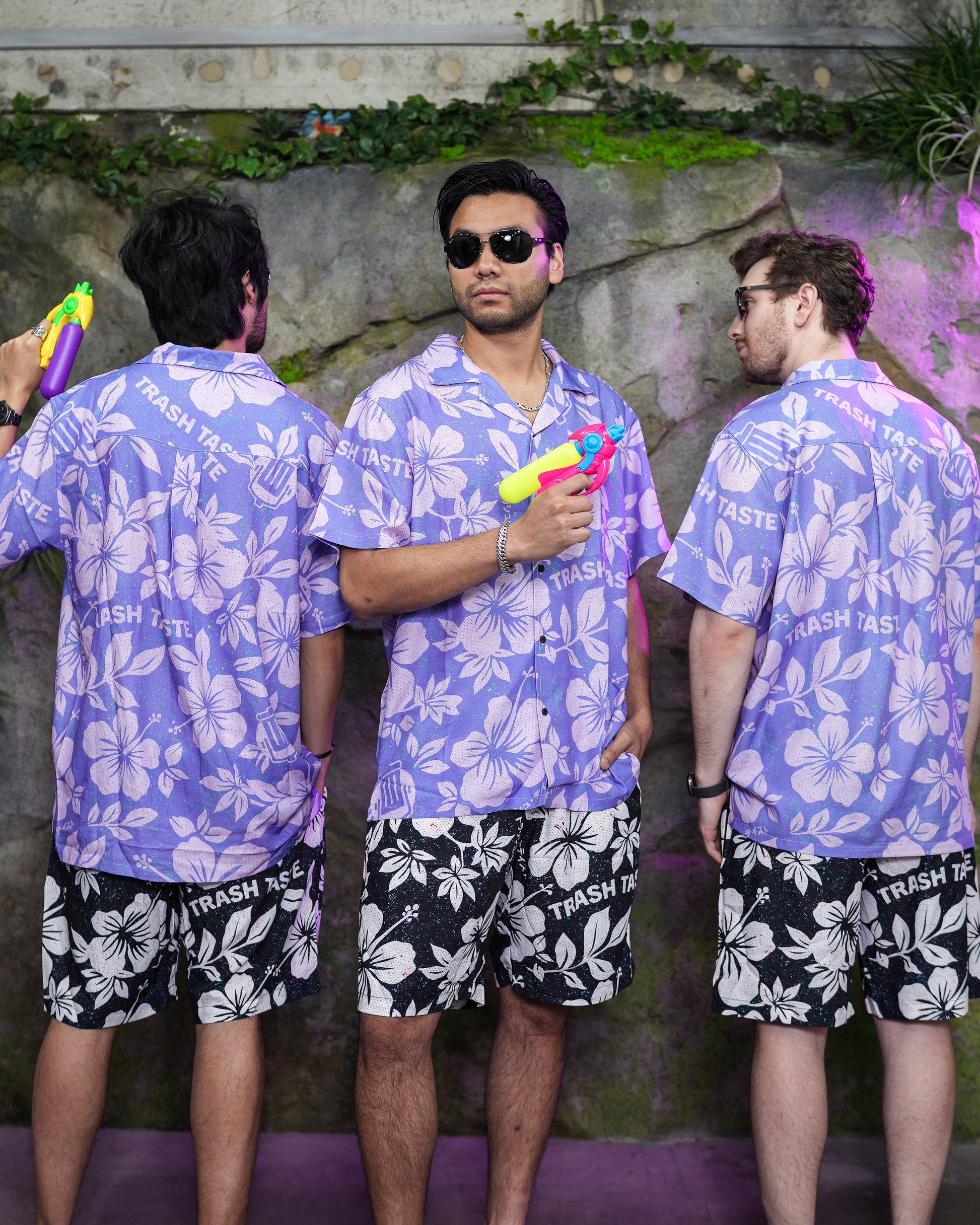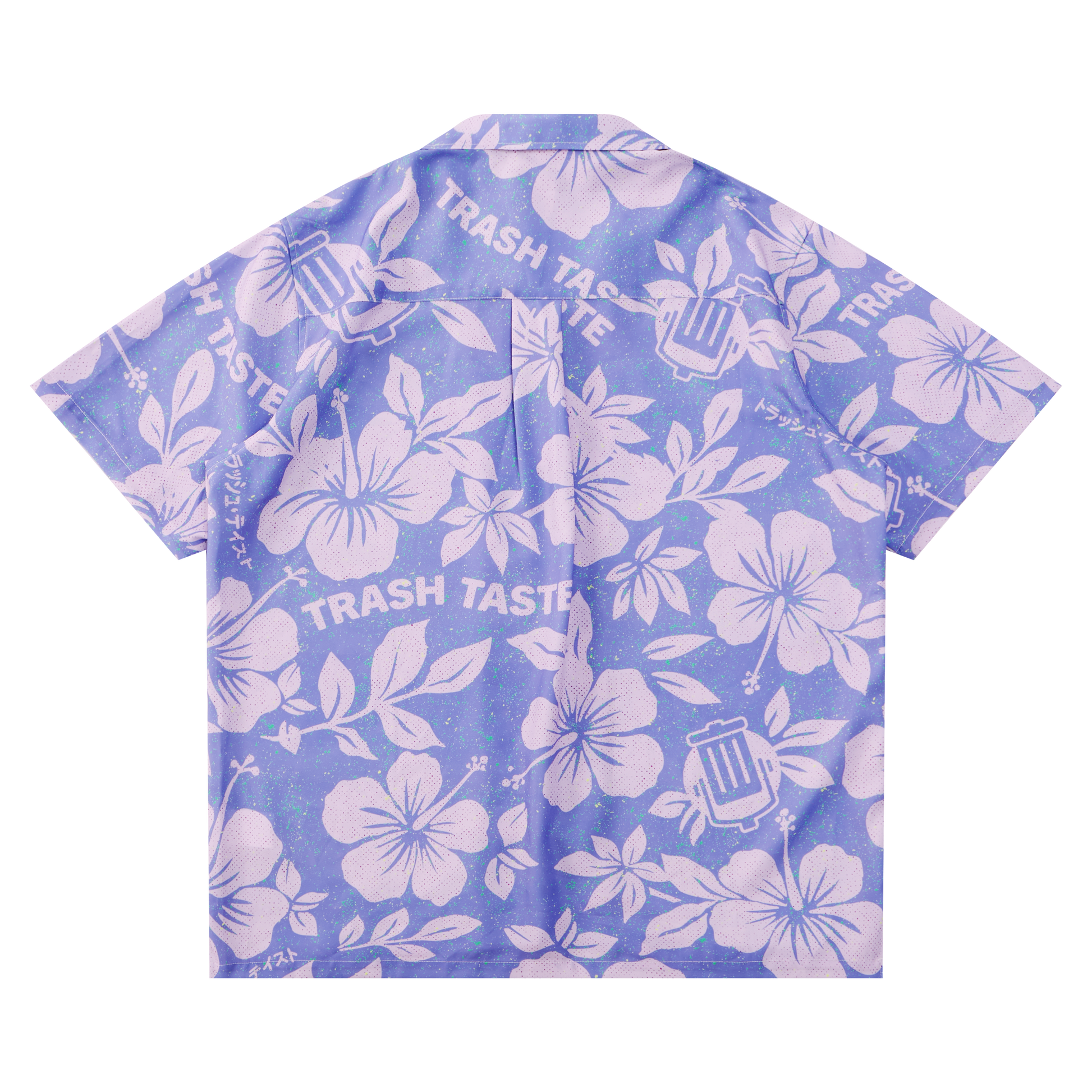 Made with breathable polyester, this shirt captures the vibrant spirit of the island and the fun-filled moments of the Trash Taste crew.